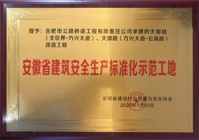 首頁(yè) > 新聞中心 > 詳細(xì)新聞近日,由我公司承建的天都路(北區(qū)屆-方興大道)、天都路(方興大道-云海路)改造工程獲得“安徽省建筑安全生產(chǎn)標(biāo)準(zhǔn)化示范工地”榮譽(yù)稱(chēng)號(hào)。