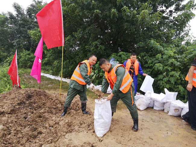 7月19日中午接嚴(yán)店鄉(xiāng)政府通知,合肥路橋嚴(yán)店基地應(yīng)急小組迅速出動(dòng),到達(dá)鄉(xiāng)政府指定的劉小河堤口進(jìn)行堤岸加固,在抗洪大堤上呈現(xiàn)一道靚麗的風(fēng)景線,在大家的通力協(xié)助下,經(jīng)過8個(gè)多小時(shí)的奮戰(zhàn),劉小河多個(gè)險(xiǎn)點(diǎn)得到全部加固,險(xiǎn)情得到控制,得到當(dāng)?shù)卣腿罕姷馁潛P(yáng)。