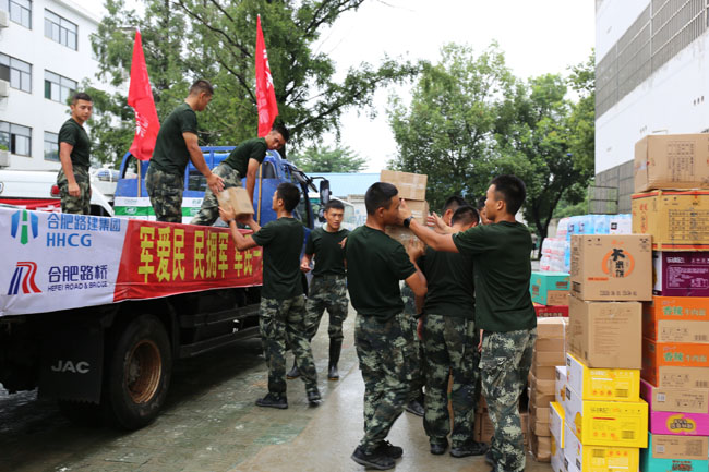 首頁(yè) > 新聞中心 > 詳細(xì)新聞7月27日下午3時(shí)許,合肥路建集團(tuán)副總經(jīng)理劉峰率黨群工作部和合肥路橋負(fù)責(zé)同志一起,緊隨載滿防汛慰問物資的車輛,驅(qū)車一個(gè)多小時(shí)來到合肥市武警支隊(duì)臨時(shí)安置點(diǎn)肥西縣三河中學(xué)慰問奮戰(zhàn)在一線的抗洪戰(zhàn)士們。