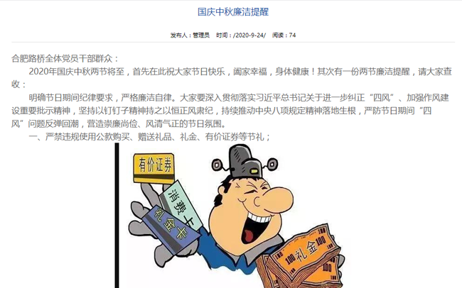 首頁(yè) > 新聞中心 > 詳細(xì)新聞“2020年國(guó)慶中秋兩節(jié)將至,首先在此祝大家節(jié)日快樂(lè),闔家幸福,身體健康!其次有一份兩節(jié)廉潔提醒,請(qǐng)大家查收!