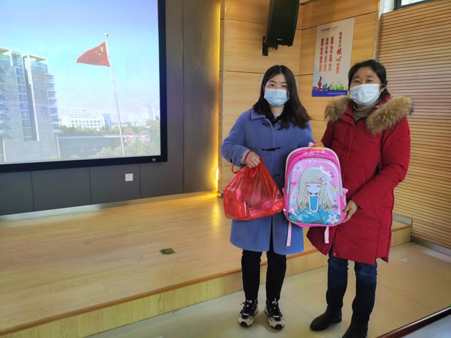在活動中,合肥路橋公司為高王社區(qū)的吳夢瑤小朋友送去了新書包和日常學(xué)習(xí)用品。吳夢瑤小朋友父親在工作中摔傷,生活不能自理,主要靠政府救濟(jì)和親人幫扶。