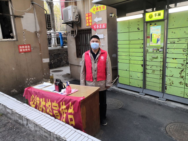 路橋的三位志愿者被分在不同的社區(qū),從清明節(jié)第一天開始,三位黨員同志分別帶著公司準備的抗疫物資上崗了。4月3日,洪虎同志在瑤海區(qū)大興塔陵防疫點,主要幫助60歲以上不會用智能手機的老年人辦理登記測溫工作,保障做好老年人祭祀綠色通道工作。