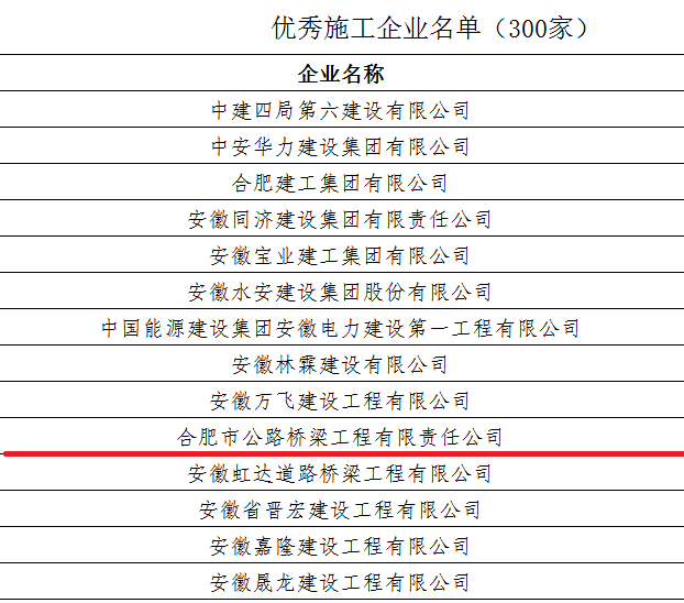 4月21日,從合肥市建筑工程協會獲悉,合肥路橋榮獲“合肥建筑業(yè)2021年度優(yōu)秀施工企業(yè)”稱號,段六一同志、王程同志榮獲“優(yōu)秀工匠”稱號。洪虎同志、楊偉民同志榮獲“安全管理先進個人”稱號。