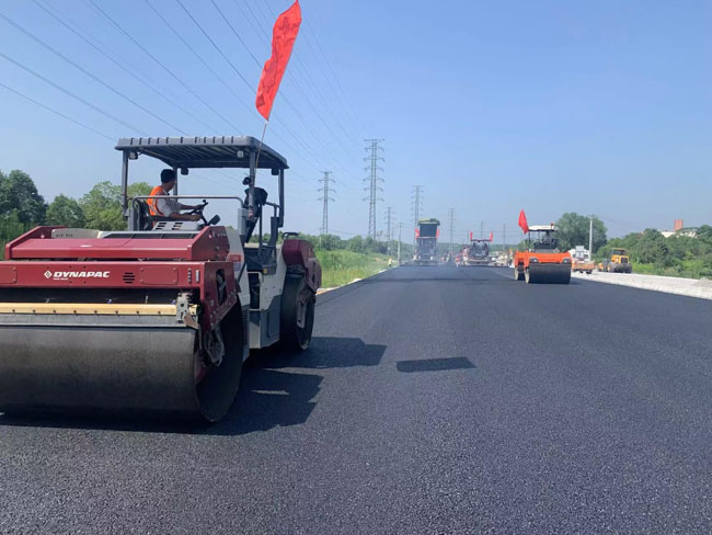 合六南通道合肥段東聯(lián)合肥,西接河南,途徑肥西縣、金安區(qū)、裕安區(qū)、金寨縣等地,沿線分布肥西縣產(chǎn)城融合示范區(qū)、裕安經(jīng)濟開發(fā)區(qū)等產(chǎn)業(yè)集中區(qū),其中S366合六南通道建設工程01標全長9990米,路面寬度28.5米。施工期間,合肥路橋克服疫情防控影響、持續(xù)高溫天氣和材料供應緊張等帶來的諸多困難,歷經(jīng)40天的連續(xù)作業(yè),負責路面施工作業(yè)的安徽和路公司順利完成11萬噸混合料的生產(chǎn)以及攤鋪,全線率先完成瀝青路面施工任務,再現(xiàn)了合肥路橋能打“硬仗”,擅打“硬仗”的風范。
