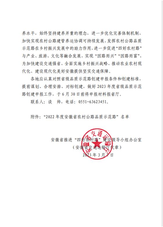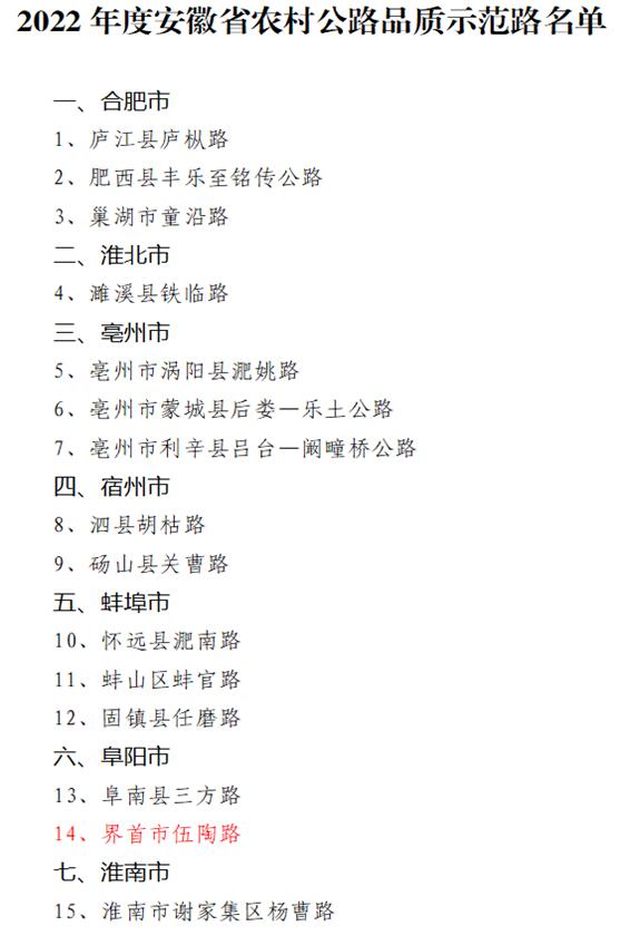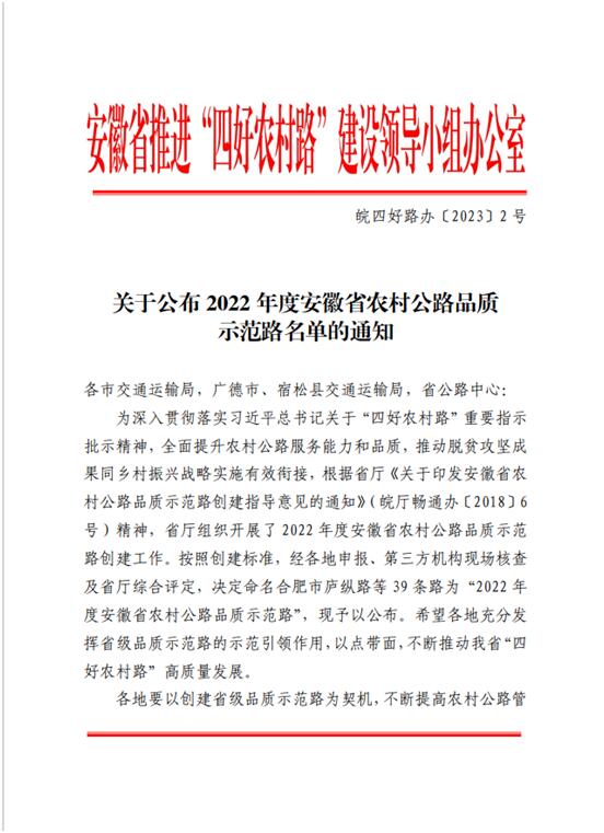 首頁(yè) > 新聞中心 > 詳細(xì)新聞近日,2022年度安徽省農(nóng)村公路品質(zhì)示范路名單正式公布,由合肥路橋承建的2021年界首市陶司路及自然村通硬化路和聯(lián)網(wǎng)路工程中的陶司路(原名伍陶路)榜上有名。