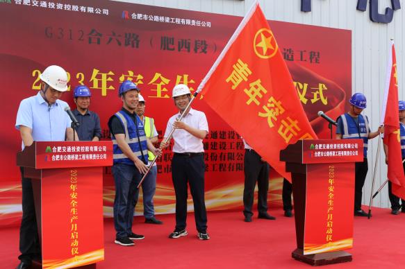 合肥交投合六項(xiàng)目公司副總經(jīng)理周恒星主持活動(dòng)儀式。啟動(dòng)儀式上,陳風(fēng)明代表建設(shè)單位向項(xiàng)目青年突擊隊(duì)授旗,楊楓代表施工單位向項(xiàng)目黨員先鋒崗授旗,項(xiàng)目經(jīng)理孫巍代表項(xiàng)目部發(fā)起“安全生產(chǎn)月”活動(dòng)倡議。
